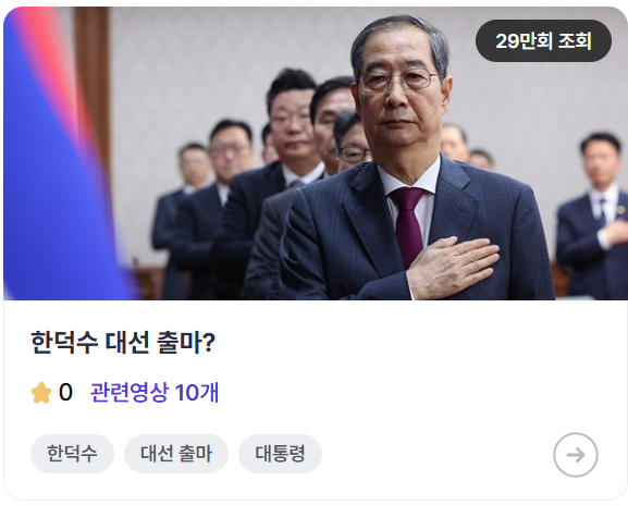 ➡️ 이슈타운R에서도 "한덕수 대통령 권한대행"의 출마 관련 영상이 화제를 모으고 있습니다.